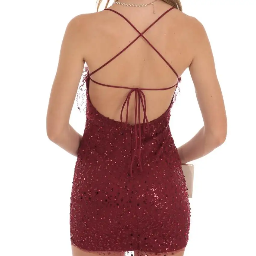 Factory Hot Selling Strapless Sequin Dress Versatile Irregular Short Skirt New Red Suspender Waist Bag Natural Sexy One-Neckline